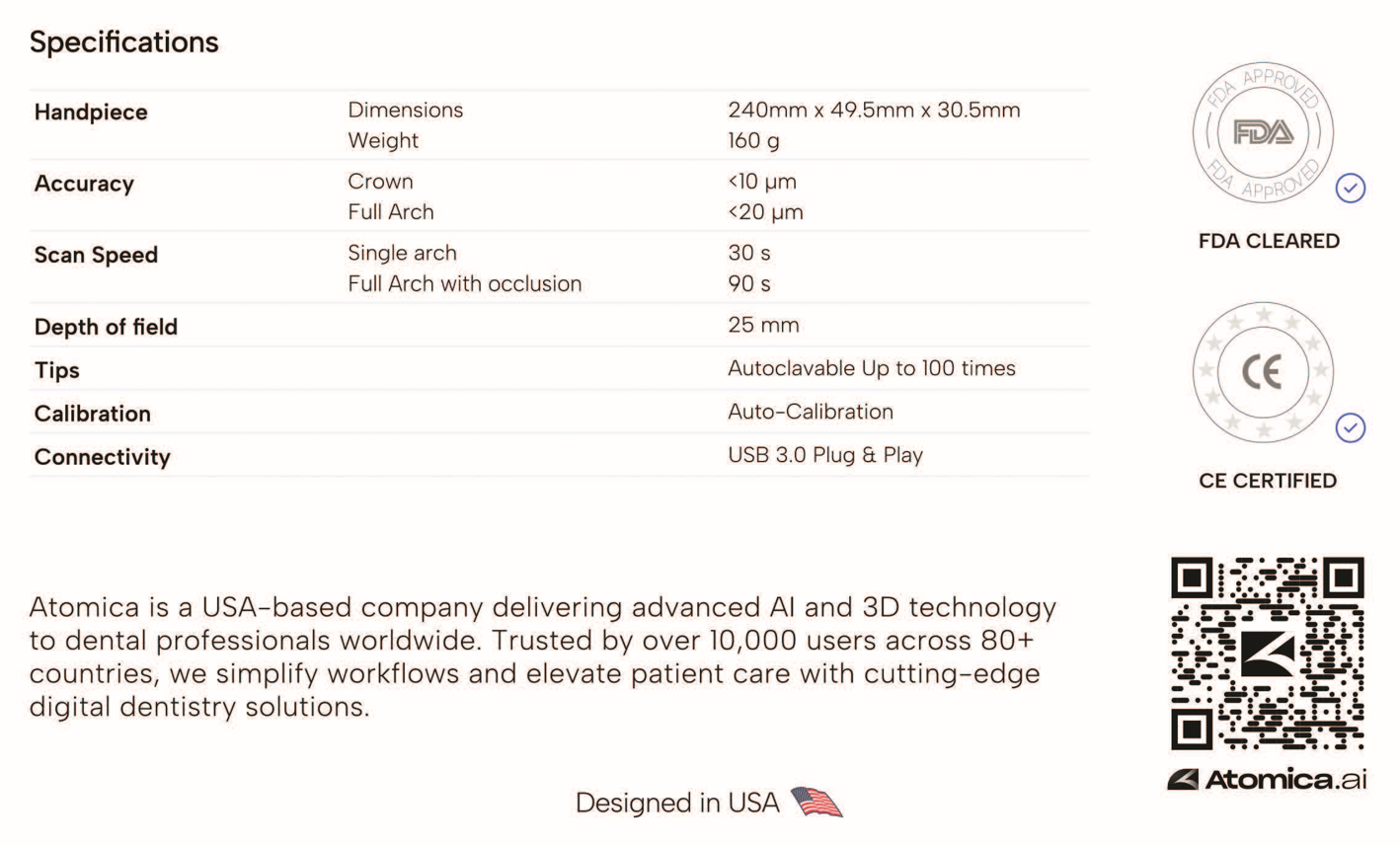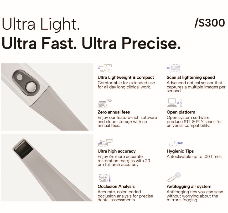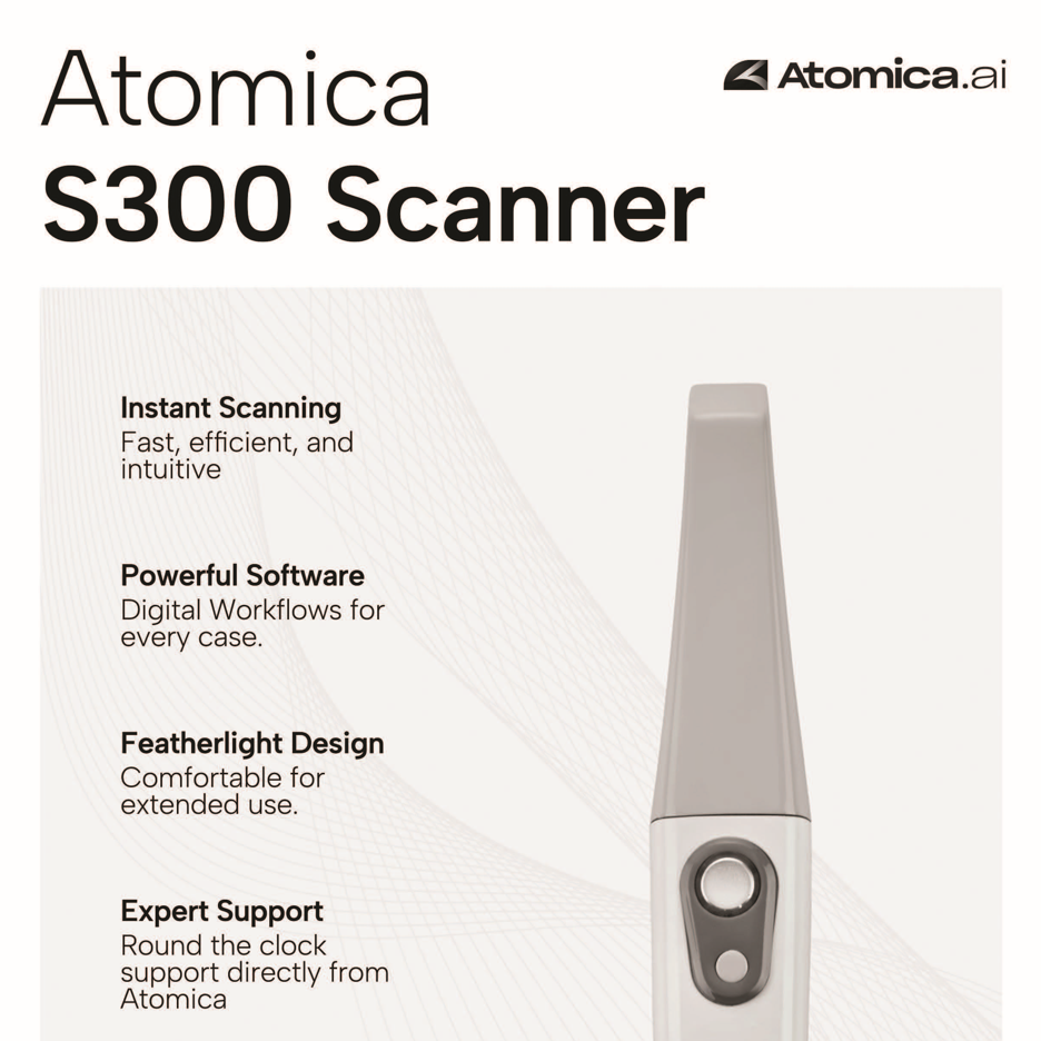 Unlock a new era of ultra-light, ultra-fast, and ultra-precise intraoral scanning with the Atomica S300. Built for the modern, high-efficiency practice, the S300 is the lightest scanner in its class—offering exceptional accuracy, instant scans, and plug-and-play performance.